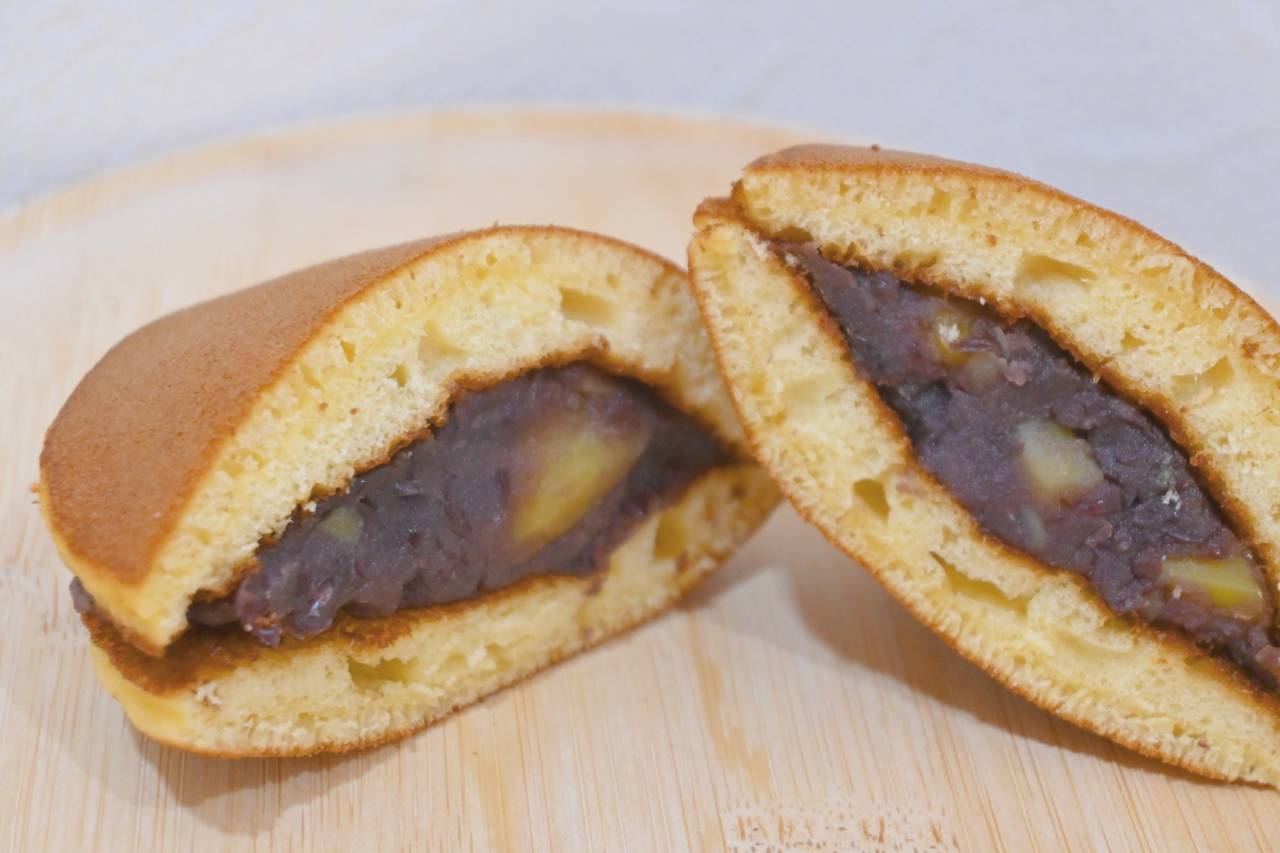- しっとりと焼き上げた生地の中に甘すぎない粒あんとクリームがたっぷり入っています。