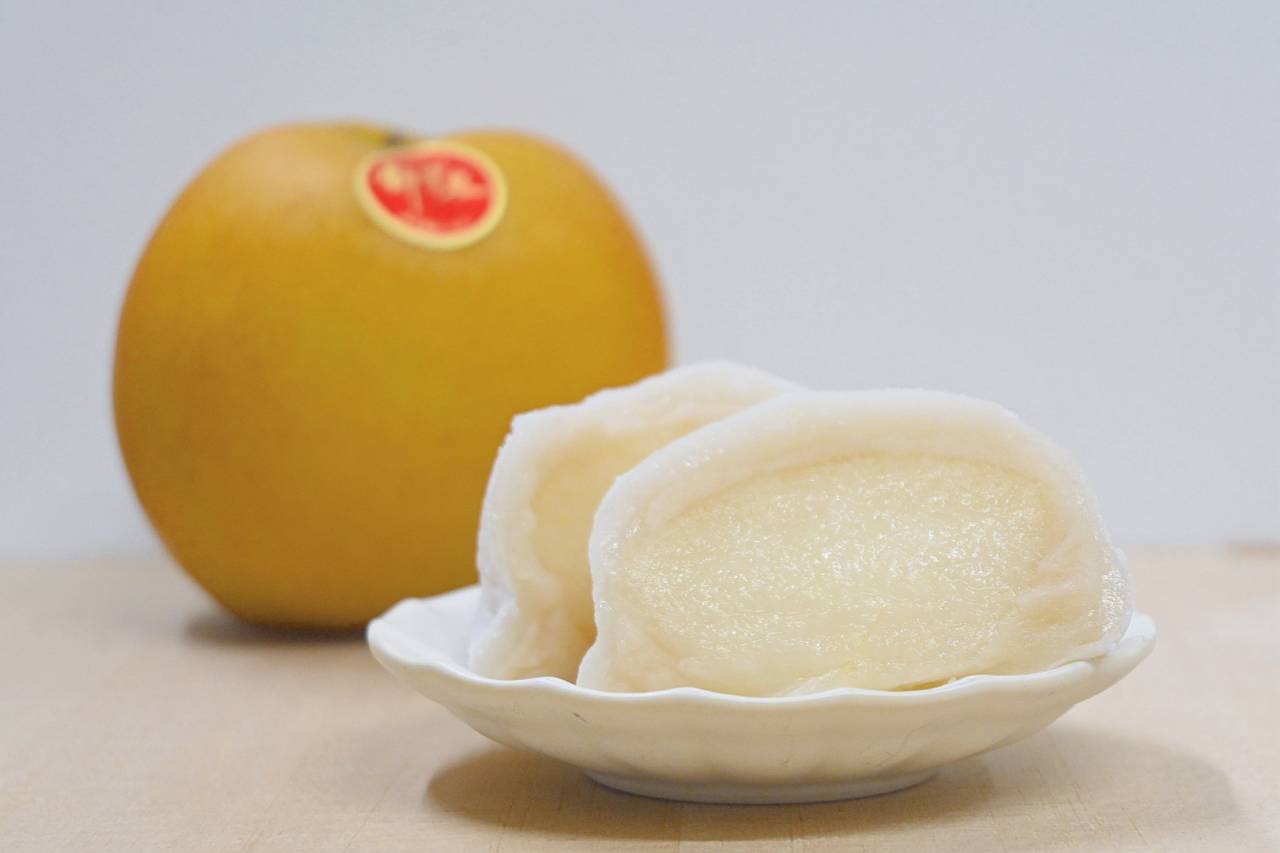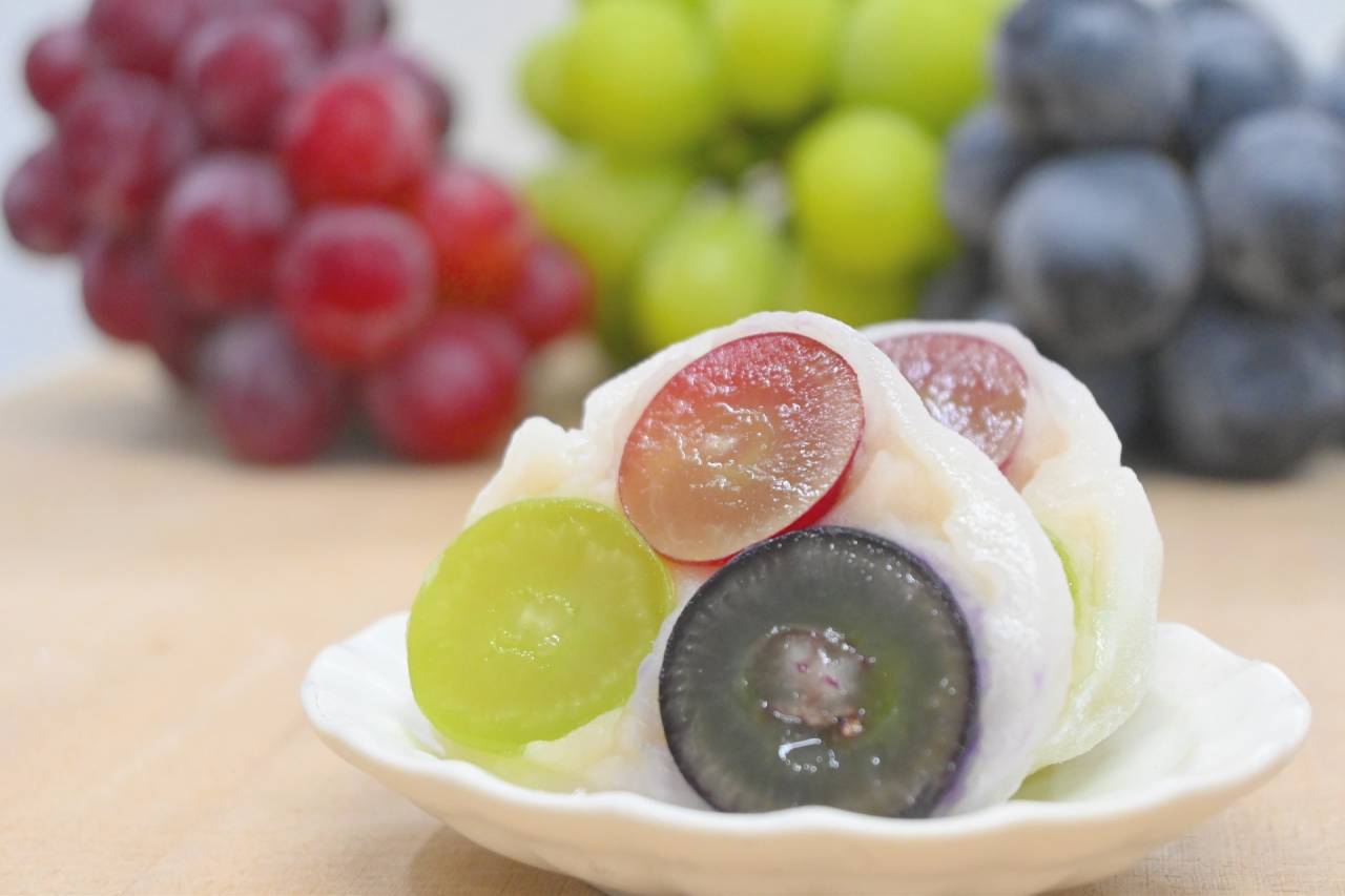 - 高級品種のシャインマスカットの大粒が入った大福です。